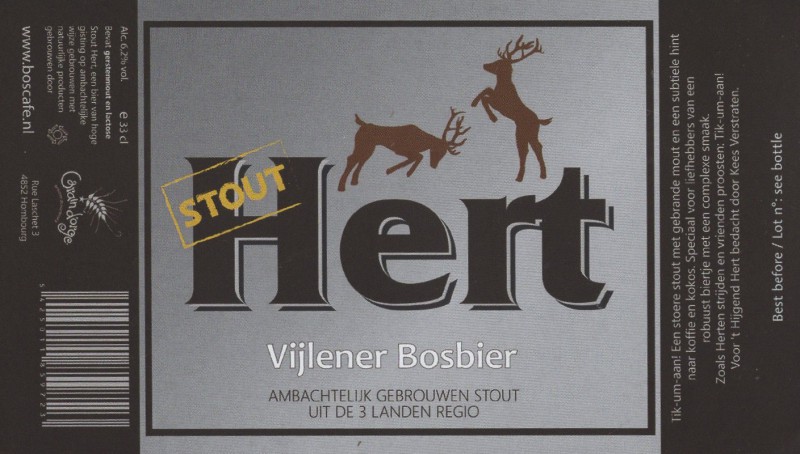 | Biernaam op etiket | Hert Vijlener Bosbier Stout |