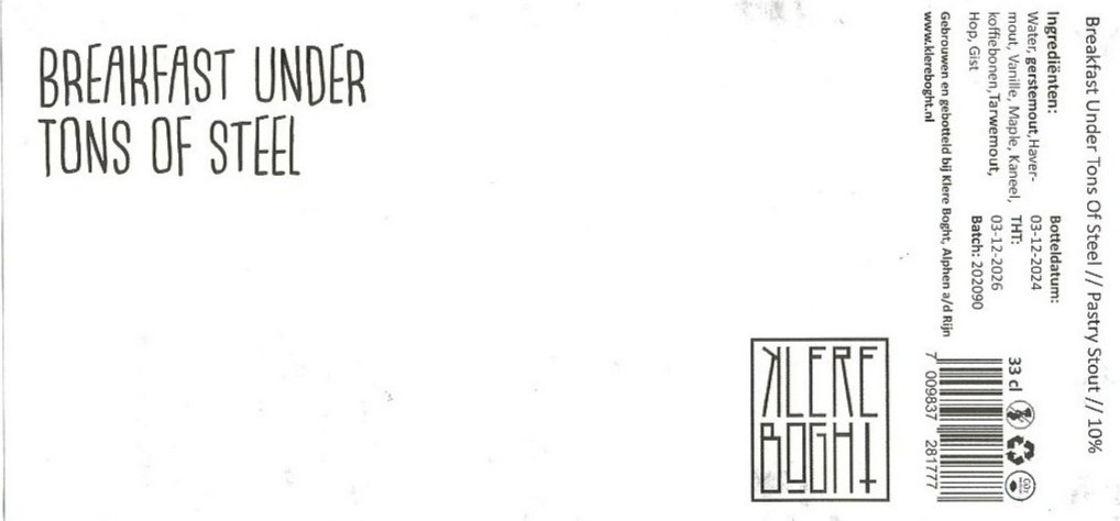 | Biernaam op etiket | Breakfast Under Tons Of Steel |