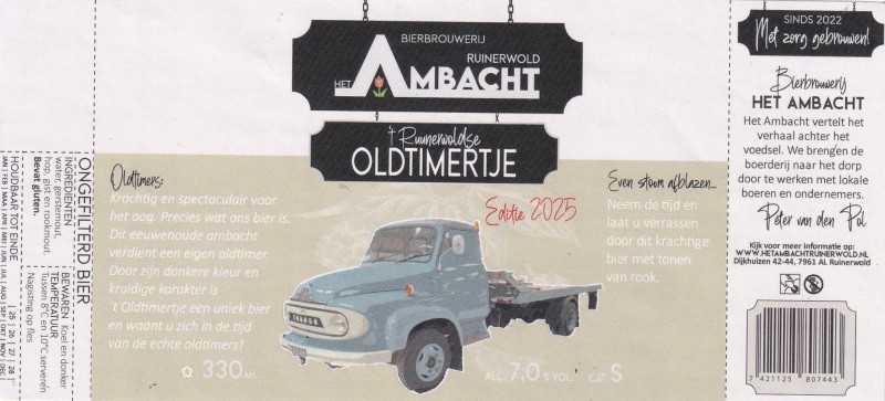 | Biernaam op etiket | 't Ruunerwoldse Oldtimertje |