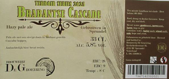| Biernaam op etiket | Brabantse Cascade - terroir series 2025 |
