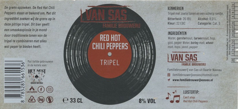| Biernaam op etiket | Red Hot Chili Peppers Tripel |
