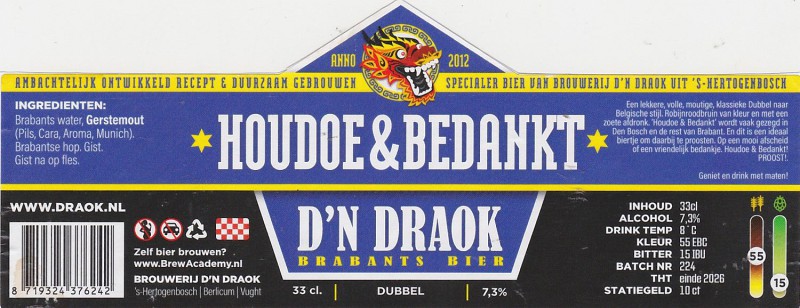 | Biernaam op etiket | Houdoe & Bedankt Dubbel |