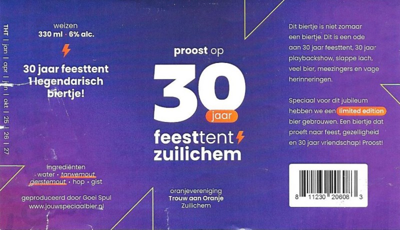| Biernaam op etiket | 30 Jaar Feesttent Zuilichem Weizen |