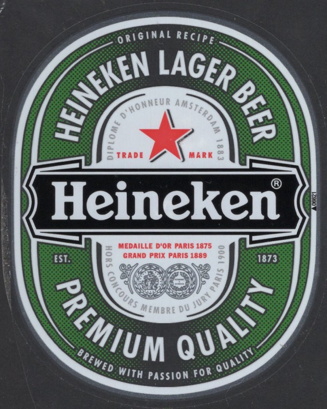 | Biernaam op etiket | Heineken Lager Beer Premium Quality |