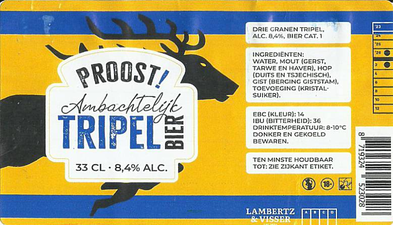 | Biernaam op etiket | Proost! Ambachtelijk Tripel Bier |