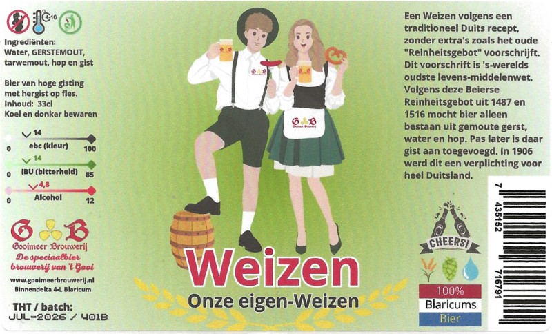 | Omschrijving | Onze eigen-Weizen met geprint data en batch code |