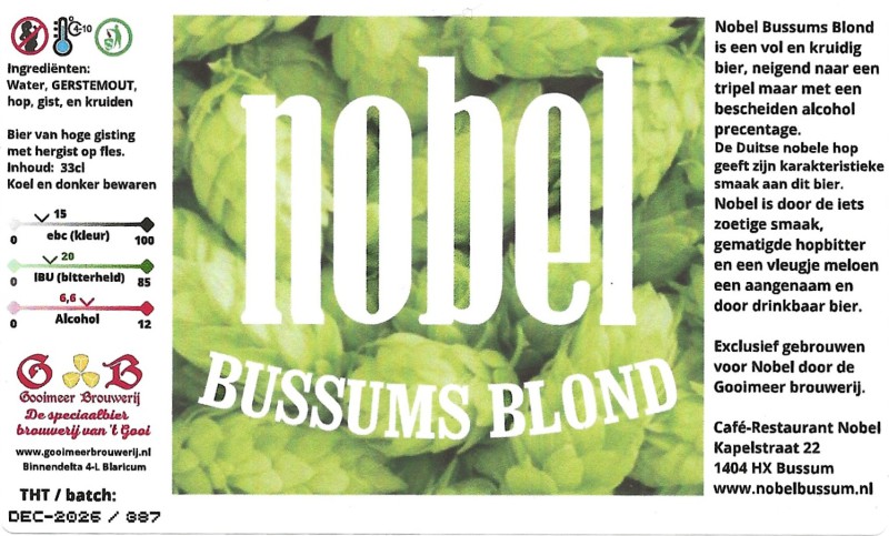 | Biernaam op etiket | Nobel Bussums Blond |