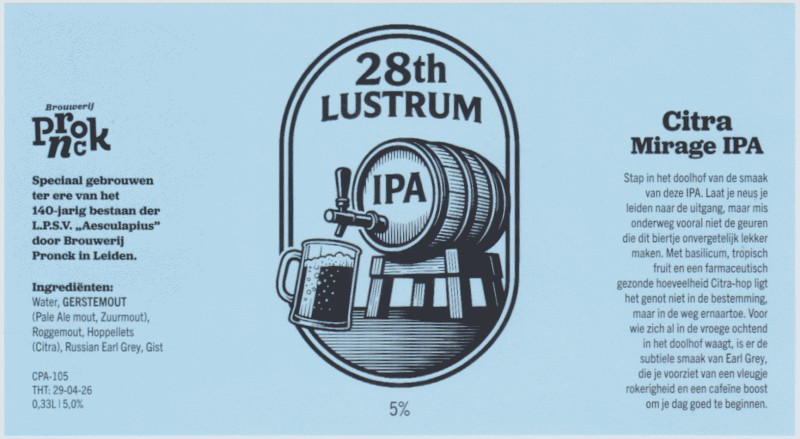 | Biernaam op etiket | 28 th Lustrum Citra Mirage IPA |