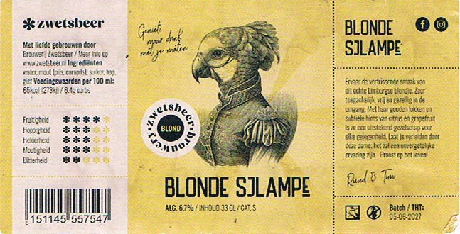 | Biernaam op etiket | Blonde Sjlampe |