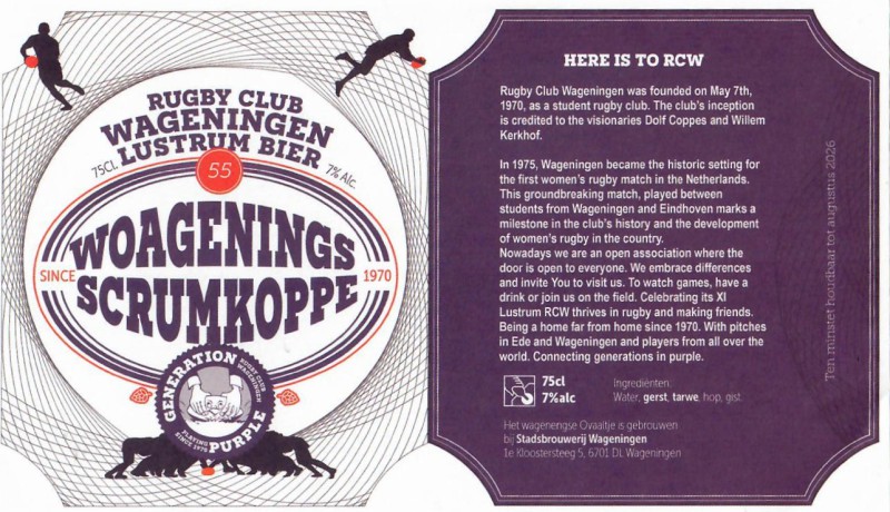 | Omschrijving | Rugby Club Wageningen Lustrumbier |