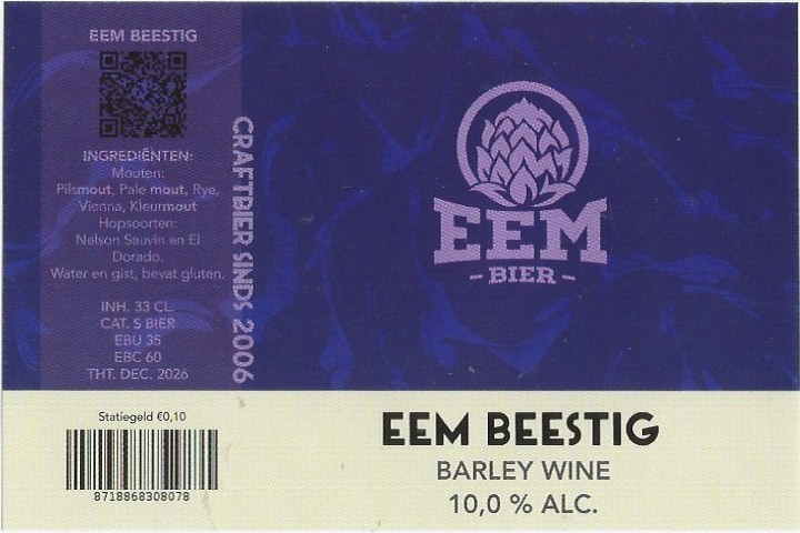 | Biernaam op etiket | Eem Beestig Barley Wine |