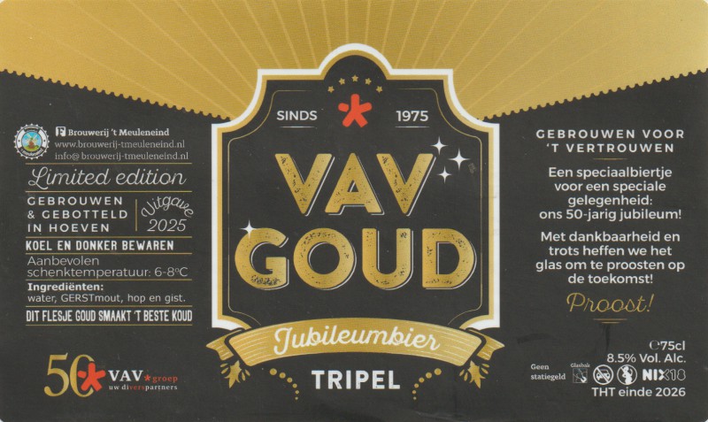 | Biernaam op etiket | VAV Goud Jubileumbier Tripel |
