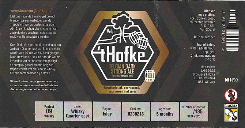 | Omschrijving | Aged in a Whisky-Cask tht 16 sept 27 |