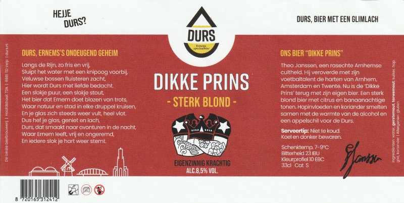 | Biernaam op etiket | Dikke Prins Sterk Blond |