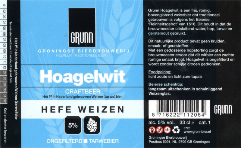 | Biernaam op etiket | Grunn Hoagelwit Hefe Weizen |