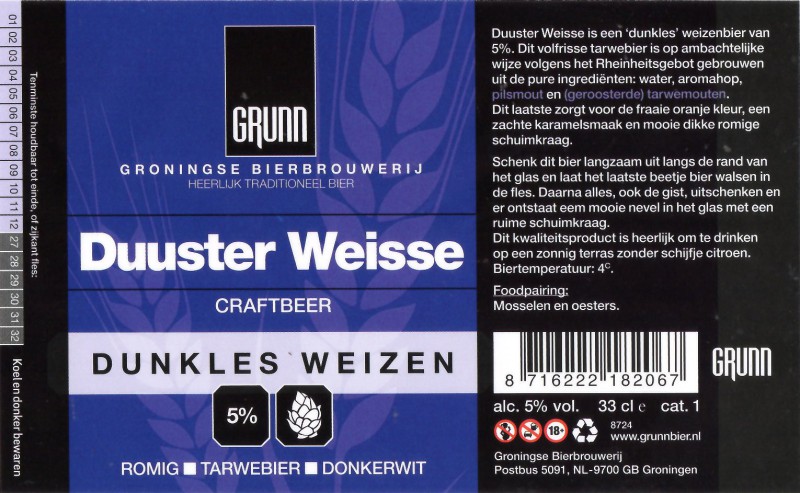 | Biernaam op etiket | Grunn Duuster Weisse Dunkles Weizen |