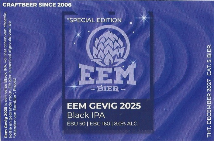| Biernaam op etiket | Eem Gevig 2025 Black IPA |