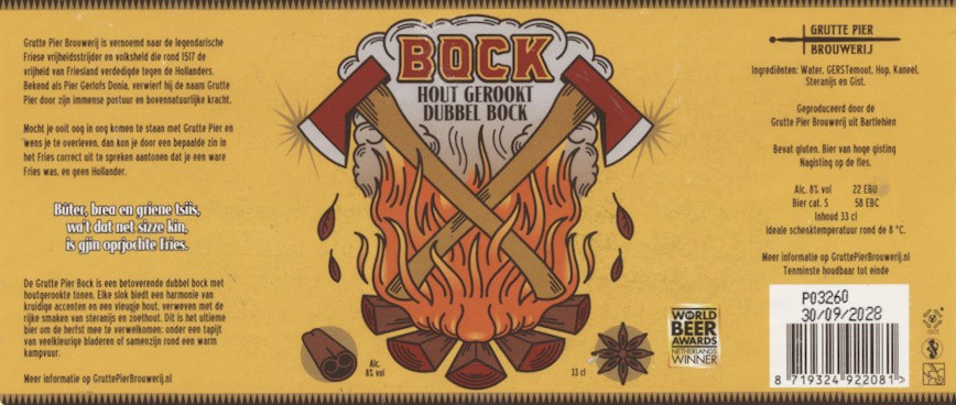 | Biernaam op etiket | Bock Hout Gerookt Dubbel Bock |