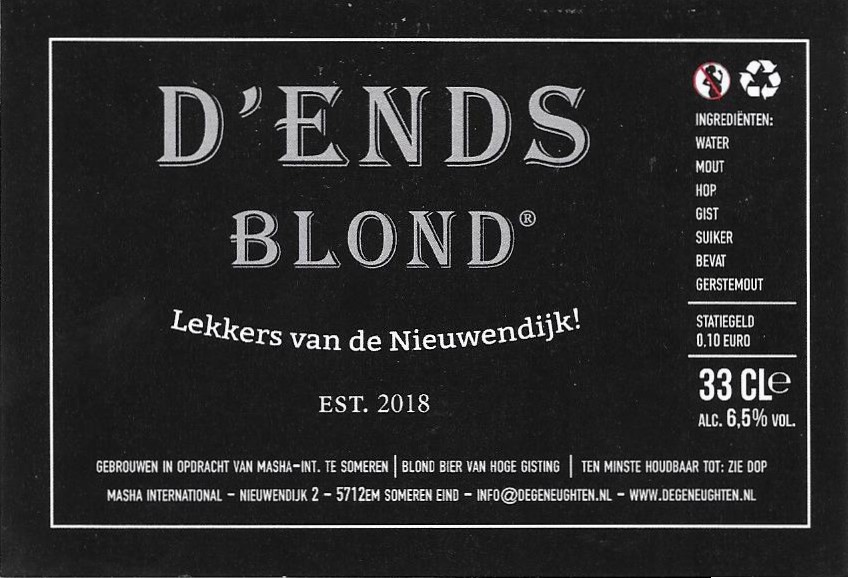 | Biernaam op etiket | D'Ends Blond |