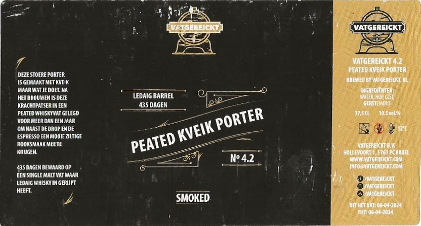 | Biernaam op etiket | Vatgereickt No 4.2 Peated Kveik Porter |