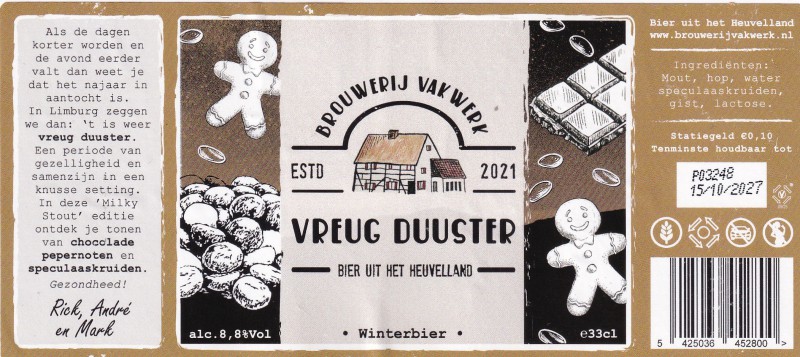| Biernaam op etiket | Vreug Duuster Winterbier |