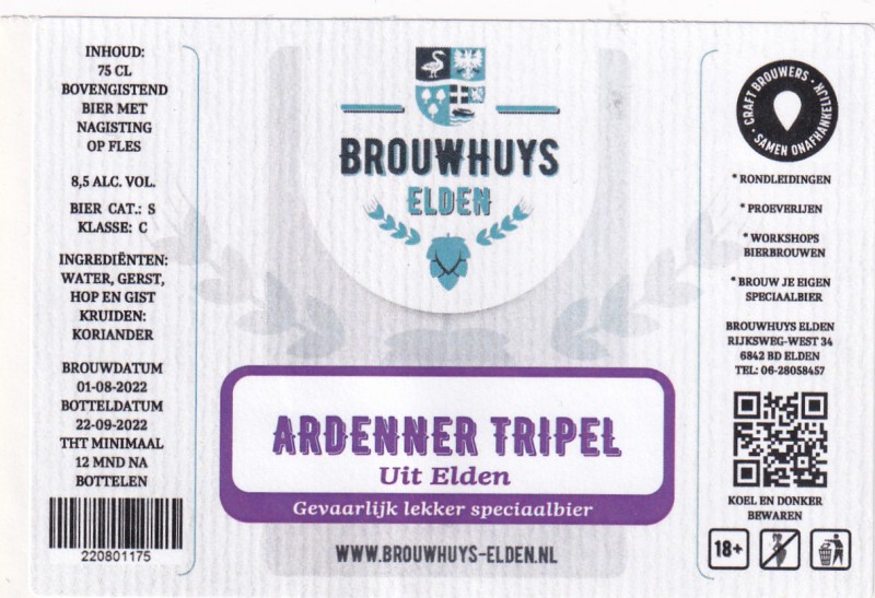 | Biernaam op etiket | Ardenner Tripel |