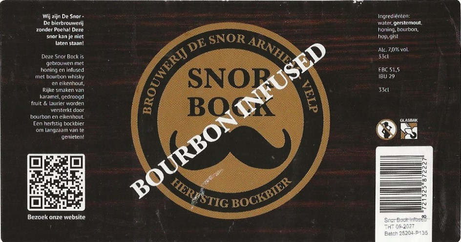 | Biernaam op etiket | Snor Bock Bourbon Infused |