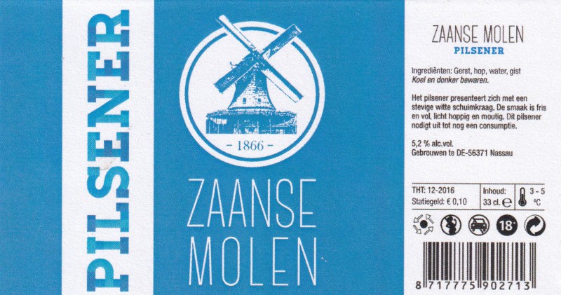 | Biernaam op etiket | Zaanse Molen Pilsener |