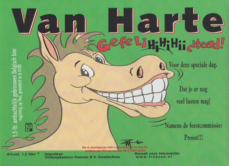 | Biernaam op etiket | Van Harte Gefelihihihiiciteerd! |
