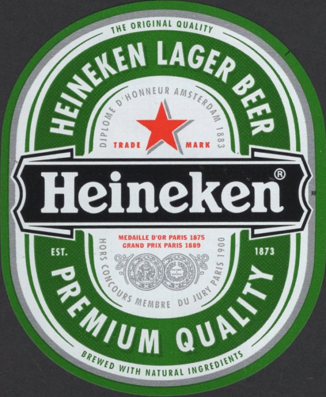 | Biernaam op etiket | Heineken Lager Beer Premium Quality |