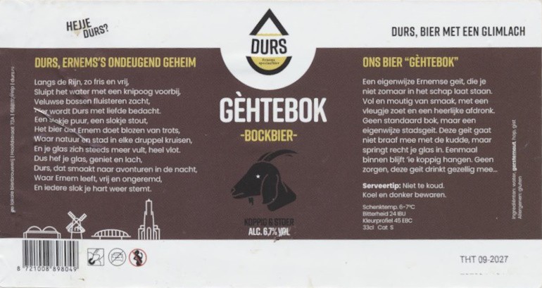 | Biernaam op etiket | Gèhtebok Bockbier |