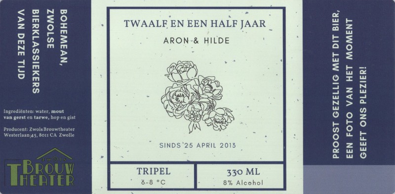 | Biernaam op etiket | Twaalf en een half Jaar Aron & Hilde Tripel |