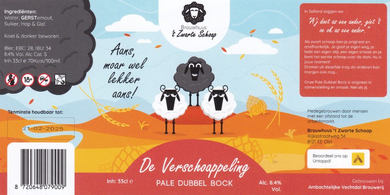 | Biernaam op etiket | De Verschoppeling Pale Dubbel Bock |