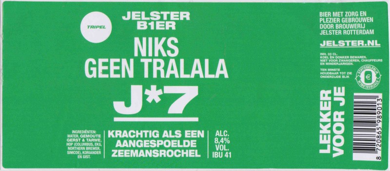 | Biernaam op etiket | Niks geen Tralala J*7 Tripel |