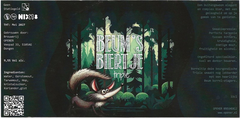 | Biernaam op etiket | Beum's Biertje Triple |