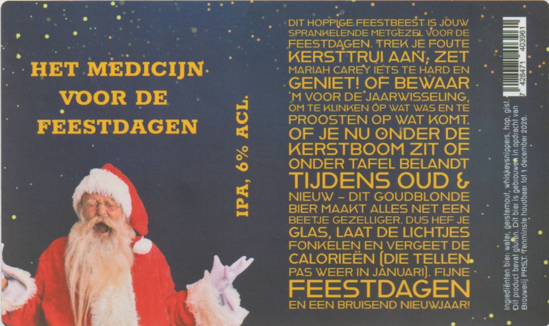 | Biernaam op etiket | Het Medicijn Voor De Feestdagen Ipa |