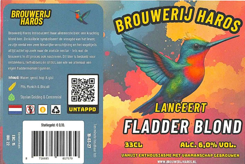 | Biernaam op etiket | Fladder Blond |