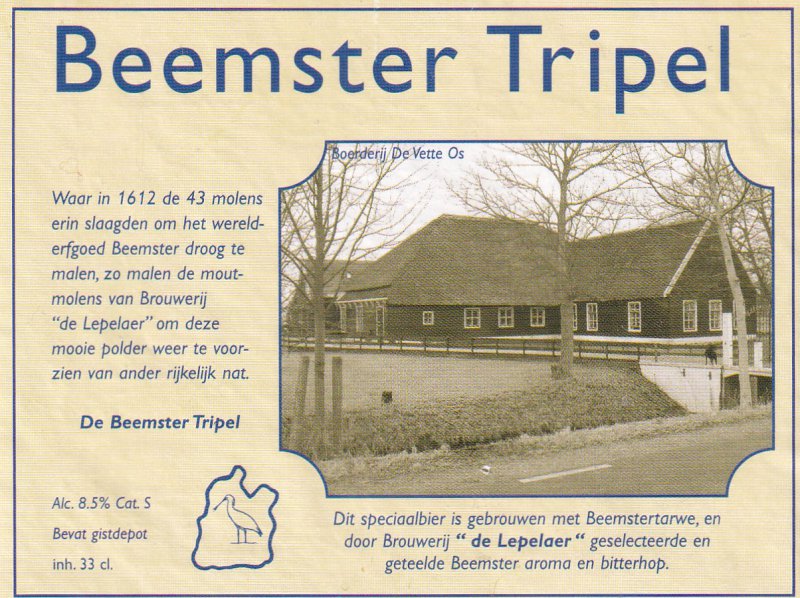 | Biernaam op etiket | Beemster Tripel |
