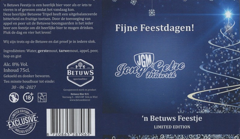 | Biernaam op etiket | 'n Betuws Feestje Fijne Feestdagen! |