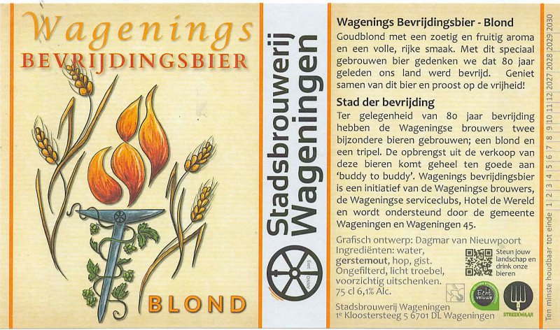 | Biernaam op etiket | Wagenings Bevrijdingsbier Blond |