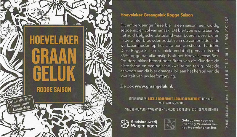 | Biernaam op etiket | Hoevelaker Graangeluk Rogge Saison |