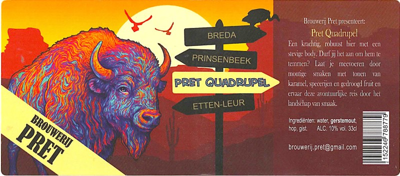| Biernaam op etiket | Pret Quadrupel |