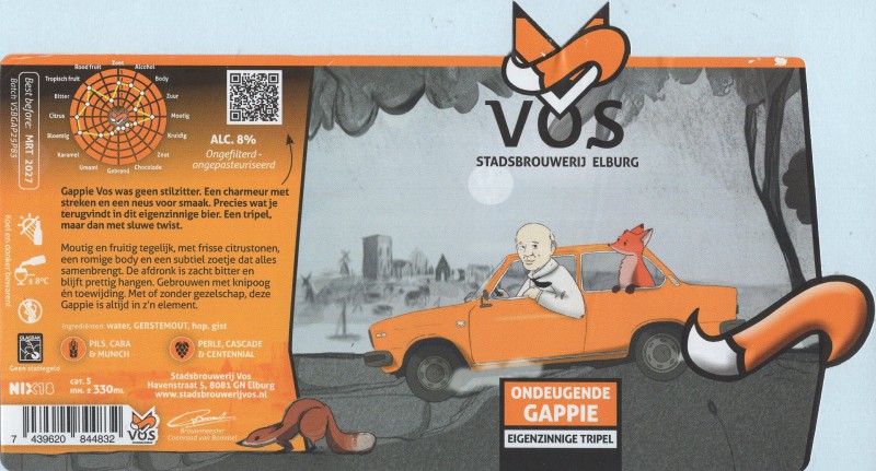 | Biernaam op etiket | Ondeugende Gappie Eigenzinnige Tripel |