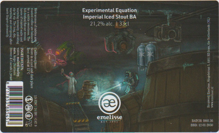 | Biernaam op etiket | Expertimental Equation Imperial Iced Stout BA |