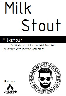 | Biernaam op etiket | Milk Stout |