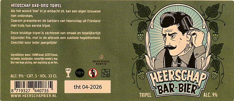| Biernaam op etiket | Heerschap Bar-Bier Tripel |