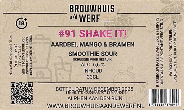 | Biernaam op etiket | #91 Shake It! Aardbei,Mango & Bramen Smoothie Sour |