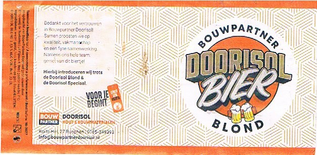 | Biernaam op etiket | Doorisol Bier Blond |