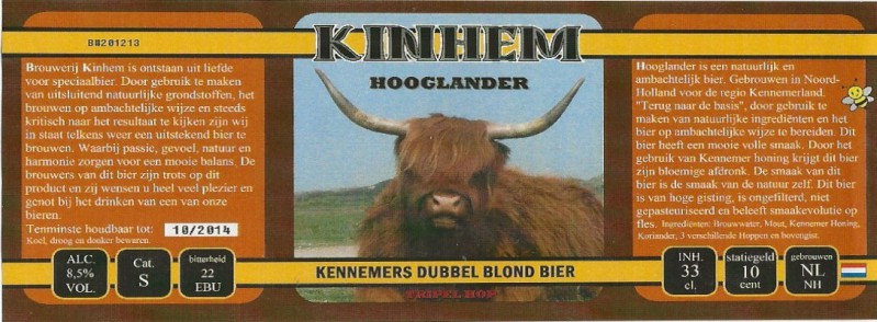 | Biernaam op etiket | Hooglander Kennemers Dubbel Blond Bier Tripel Hop |
