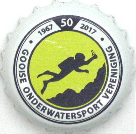 | Tekst op de kroonkurk | Gooise Onderwatersport Vereniging 1967 2017 50 |